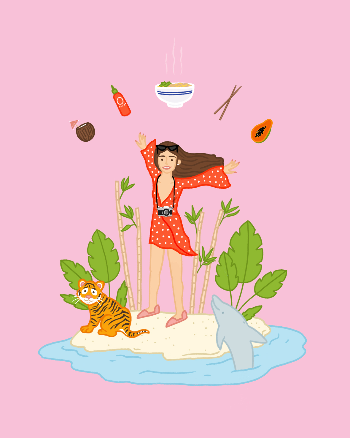 Caitlin Das is an illustrator born and raised in East Vancouver whose work you may recognize from Native Shoes’ store windows. Her illustration depicts a dream of hers to explore Southeast Asia; chowing down on veggie pho and fresh salad rolls, taking a boat tour through the floating market in Bangkok and shooting roll upon roll of film.