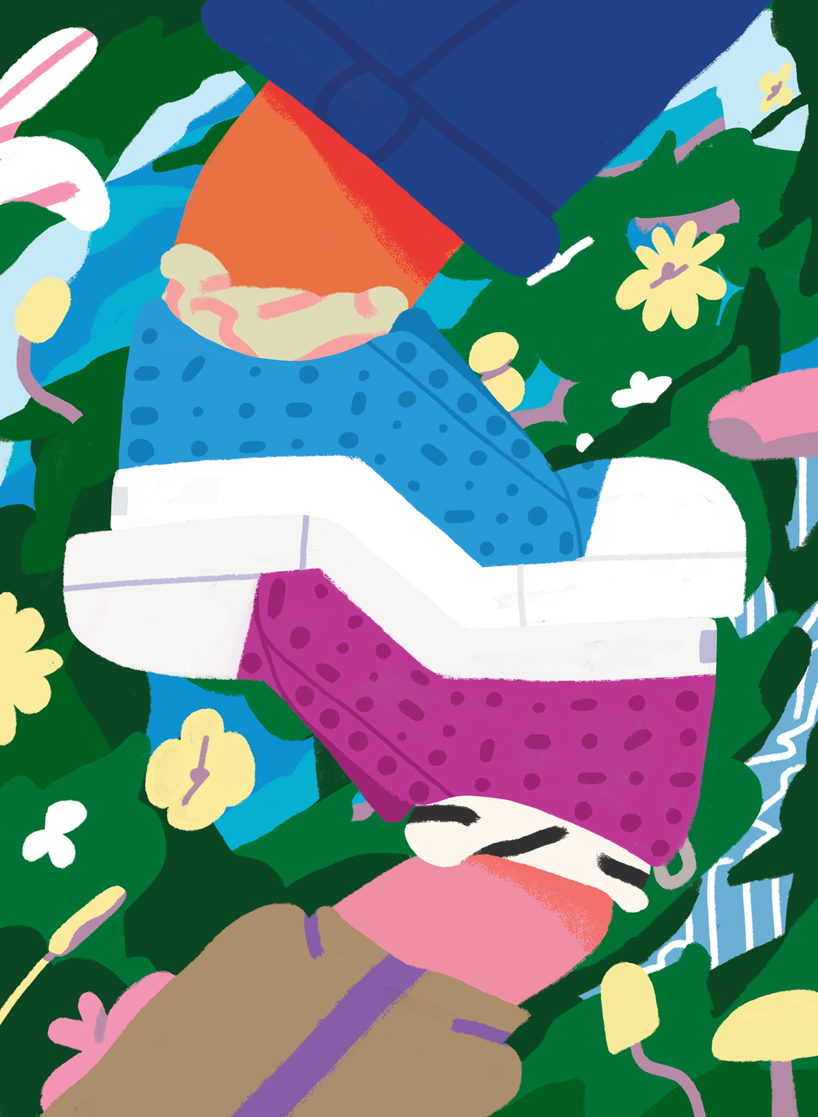 Ery Burns is an artist living in Bristol who doodles for a living. Here she illustrates somewhere – anywhere, lush and peaceful to put your feet. Her most incredible getaway? Snorkeling through a jet stream of shoal fish in ancient Roman ruins off of the South of France.